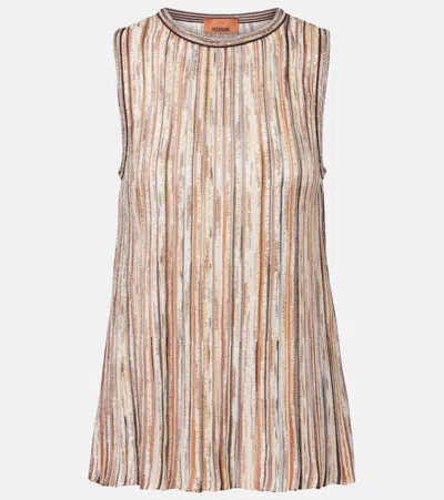 Sequin-embellished Striped Metallic Crochet-knit Tank In Multi