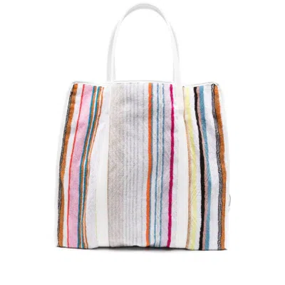 Small Chevron Cotton Tote Bag In Canvas Ivory