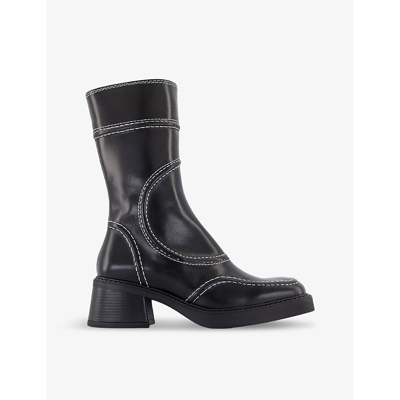 Womens Black Maelene Square-toe Leather Ankle Boots