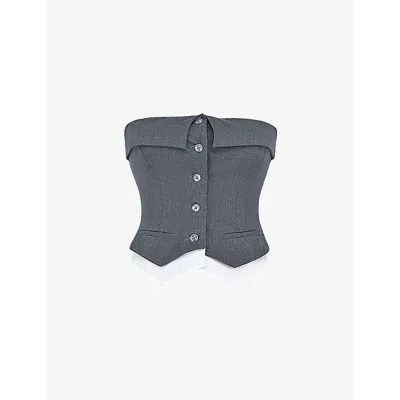 Womens Slate Strapless Stretch-woven Waistcoat Top L