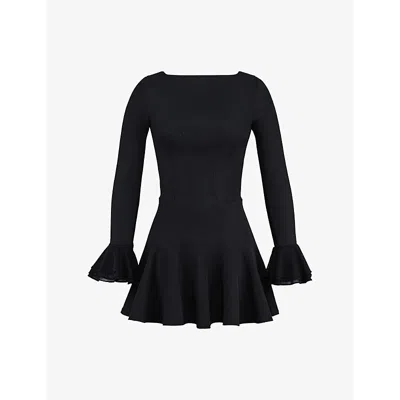 Womens Black Boned Flared-skirt Stretch-twill Mini Dress