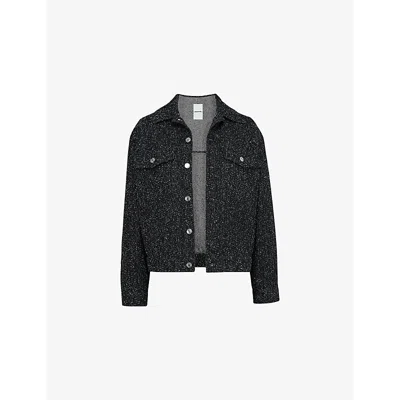 Womens Dark Grey Peak-lapel Cropped Woven Blazer