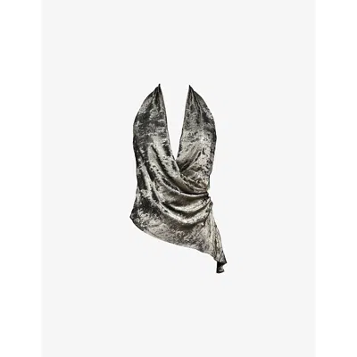 Womens Gold Halter-neckline Asymmetric-hem Woven Top
