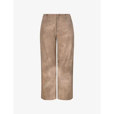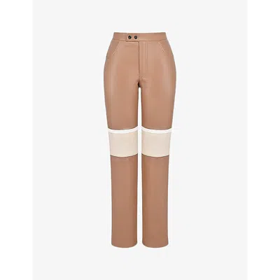 Womens Straight-leg Mid-rise Vegan-leather Trousers Nutmeg