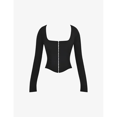 Womens Black Square-neck Long-sleeve Stretch-crepe Corset Top