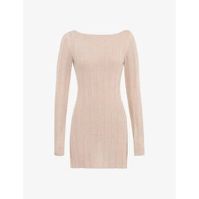 Womens Biscuit Boat-neck Ribbed Knitted Mini Dress