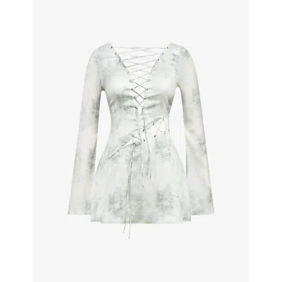 Womens Phantom Graphic-print Lace-front Stretch-mesh Mini Dress In Animal Print