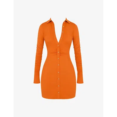 Womens Marquis Button-down Long-sleeve Stretch-jersey Mini Dress In Orange