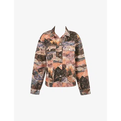 Womens Thoughts Graphic-print Relaxed-fit Denim Jacket In Landscape Print