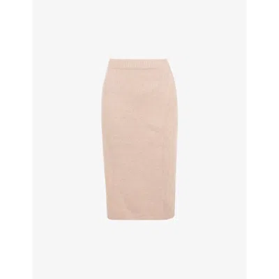 Womens Cream Eyelash Slim-fit High-rise Knitted Pencil Skirt