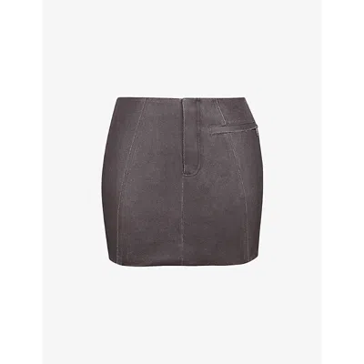 Womens Zip-embellished High-rise Vegan-leather Mini Skirt In Earth