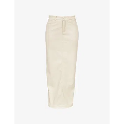 Womens Rear-slit Faux-leather Midi Skirt Cream