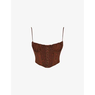 Womens Dreaming Ruched-bust Stretch-woven Corset Top In Brown Print