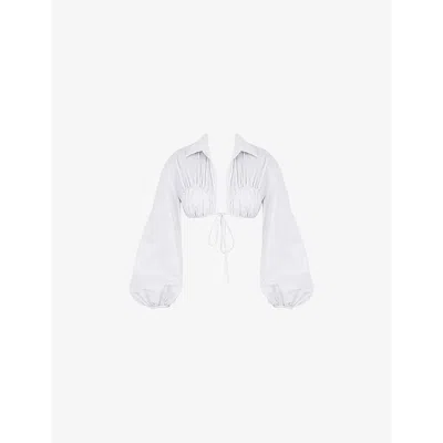 Womens Ruse Balloon-sleeve Cropped Cotton Top In Beige