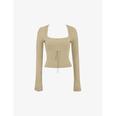 Womens Square-neck Long-sleeve Stretch-knit Top In Gravel