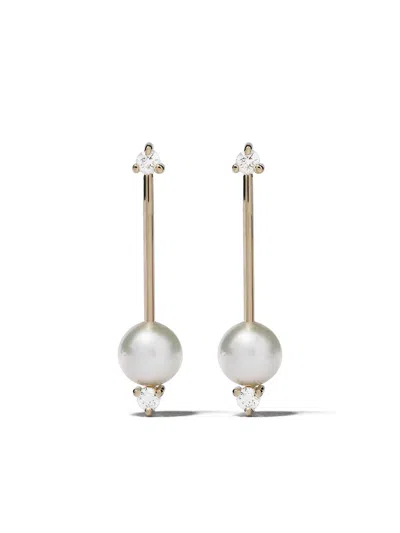 14kt Gold Sea Of Beauty Diamond Pearl Bar Earrings