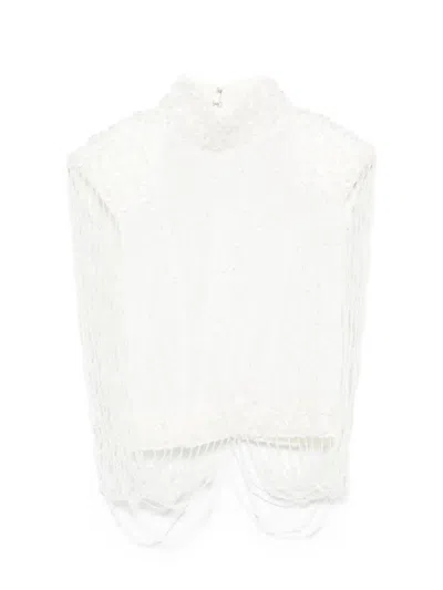 Beaded Fringe Blouse In White