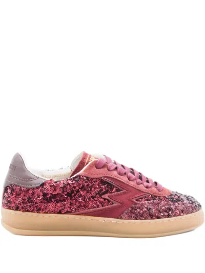 Low-top Sneakers With Burgundy Glitter And Pink Logo In Animal Print