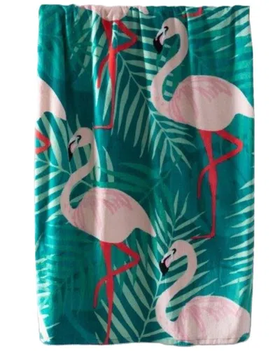 Set Of 2 Flamingo Pineapple Velour Beach Towels In Green
