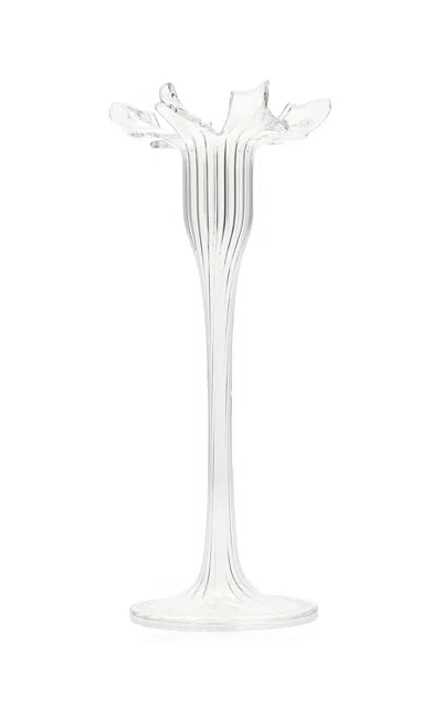 Medium Floral Glass Candle Stick In Clear