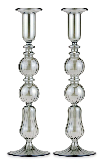 Lily Of The Valley Set-of-two Glass Candlesticks In Green