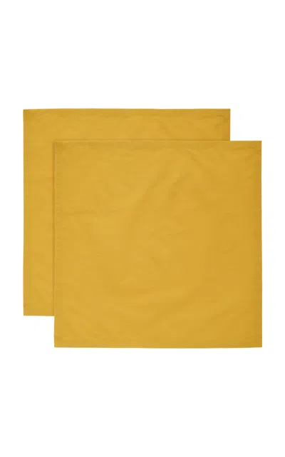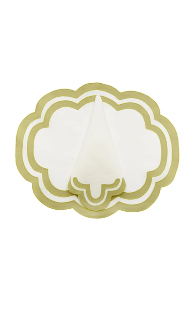 Scalloped Linen Placemat And Napkin Set In Yellow,olive
