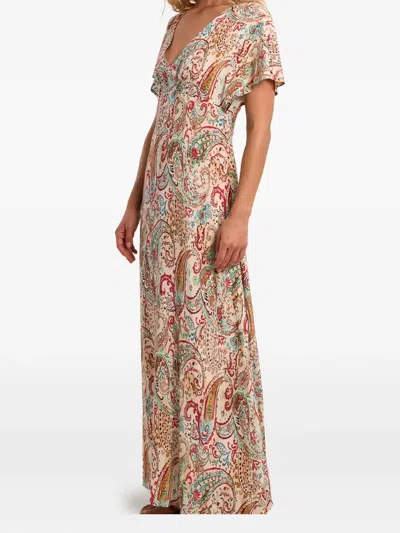 V领佩斯理印花超长连衣裙