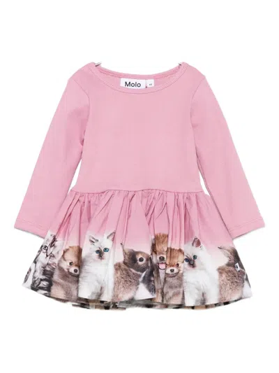 Babies' Animal-print Flared Dress In Pink