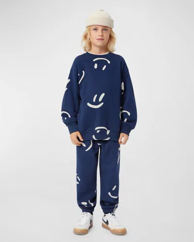 Kids' Boy's Adan Happy Face Joggers In Big Smiles Navy