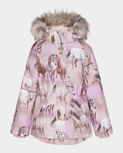 Kids' Girl's Cathy Praire Horse-print Faux Fur Coat In Dreamy Horses
