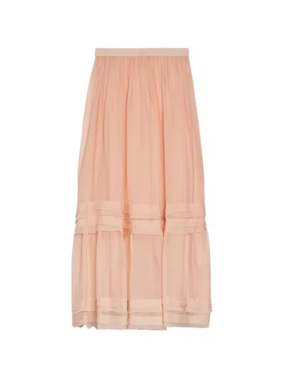 Elasticated Ruffled Midi Skirt In Pink