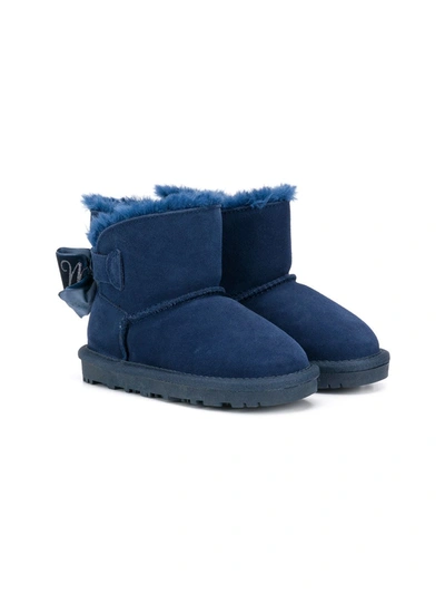 Kids' Crust Leather Boots With Rhinestone Bows In Dusty Pink Rose