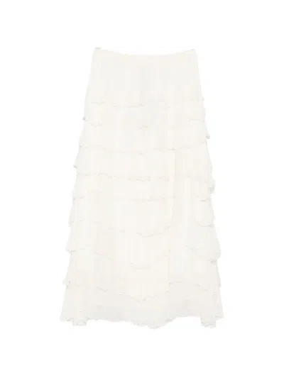 Mlmtritone Ruffled Tiered Midi Skirt In White