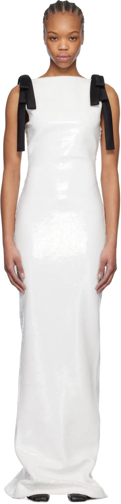 White Bows Sequins Maxi Dress In White/black Bow