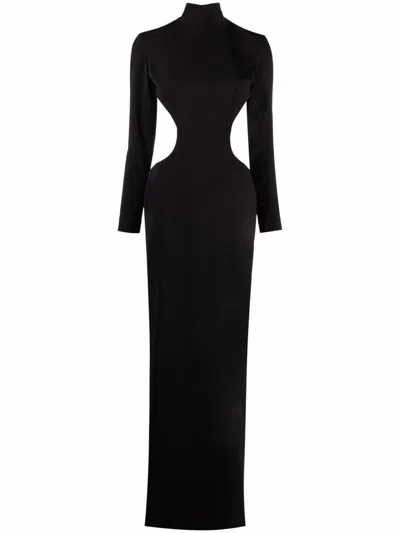Slit Detail Silk Crepe Long Dress In Black
