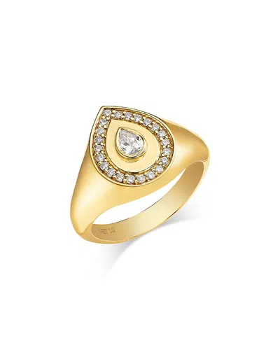 Pear Halo Lab Grown Diamond Signet Ring In 14k Yellow Gold, 0.4 Ct. T. W.