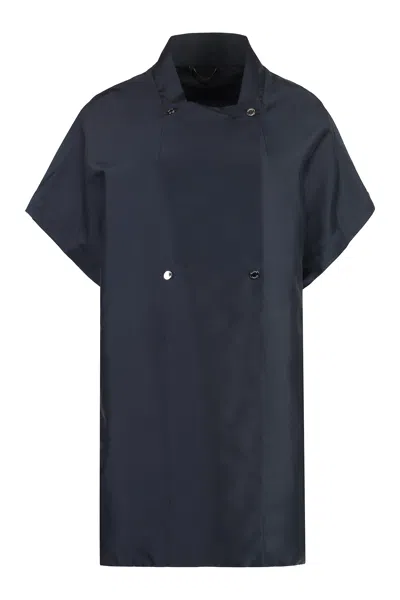 Cape-design Wool Coat With Down Jacket And Fox Fur Hood In Black