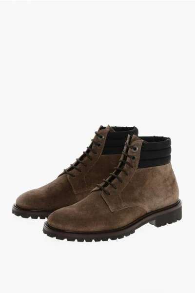 Suede Cannicci Lace-up Booties With Carrion Sole In Brown