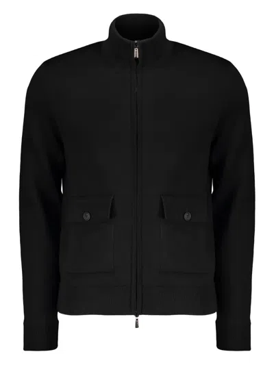 Elegant Black Knit Cardigan With Zip