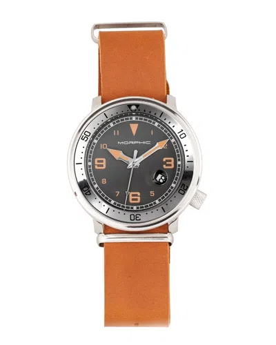M74 Series Leather-band Watch W/magnified Date Display In Camel/grey/brown