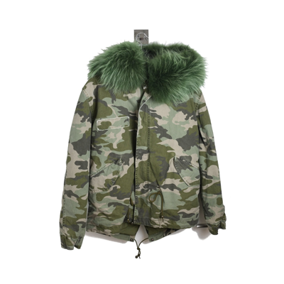 Army Camouflage Print Fur Hooded Jacket Green In Xxl