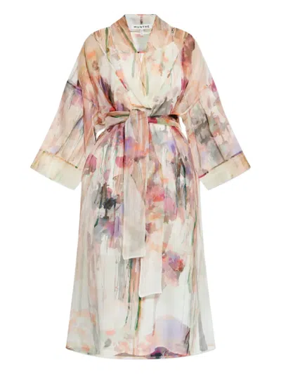 花卉印花半透明开襟式外套