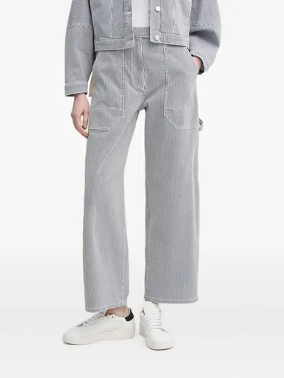 Embroidered-motif Striped Trousers In Blue