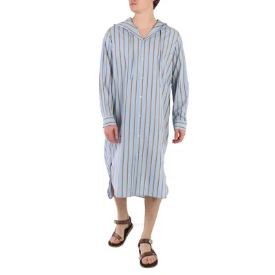 Men's Blue / Camel Stripe Granddad Hooded Long Shirt In Yellow/blue