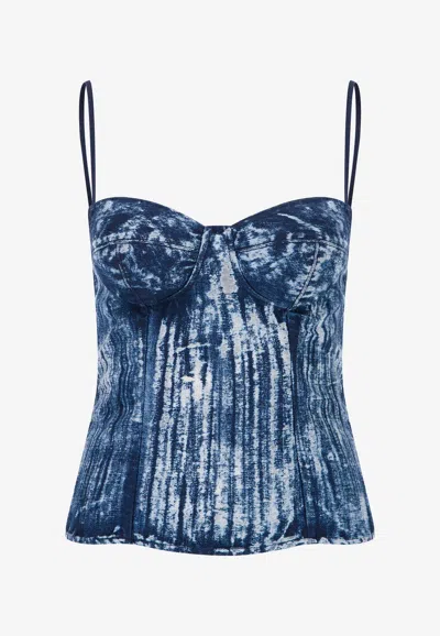 Avalon Bleached Denim Bustier Top In Blue
