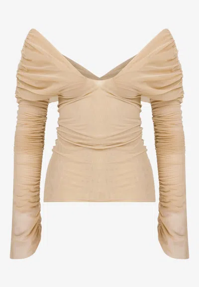 Gwen Off-shoulder Ruched Top In Brown