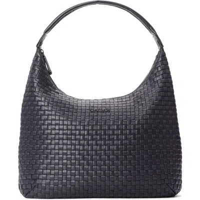 Mini Woven Hobo Tote Bag In Black