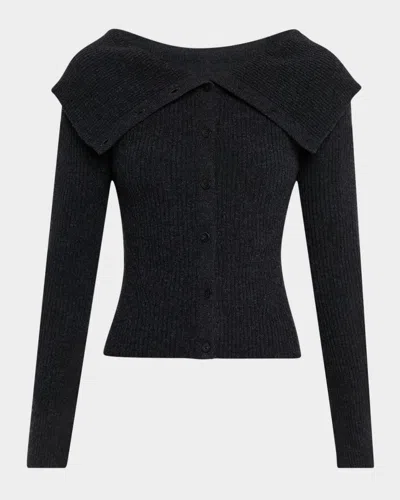 Ribbed Wool-cashmere Foldover Cardigan In Smoke