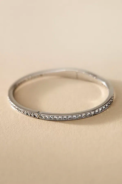Half Pavé Crystal Hinged Oval Bangle Bracelet In Silver