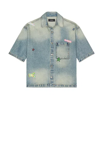 Denim Bandaid Short Sleeve Shirt In Blue